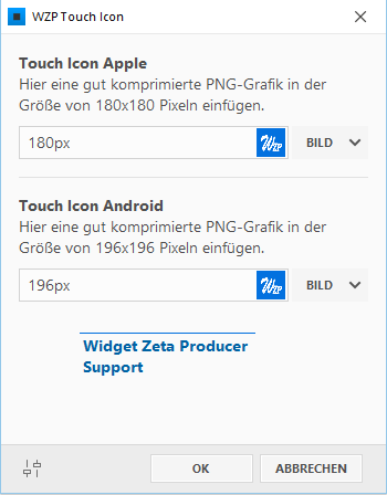- Einfach das Widget auf der gewünschten Seite platzieren und jeweils eine gut komprimierte PNG-Grafik für Apple und Android einfügen.